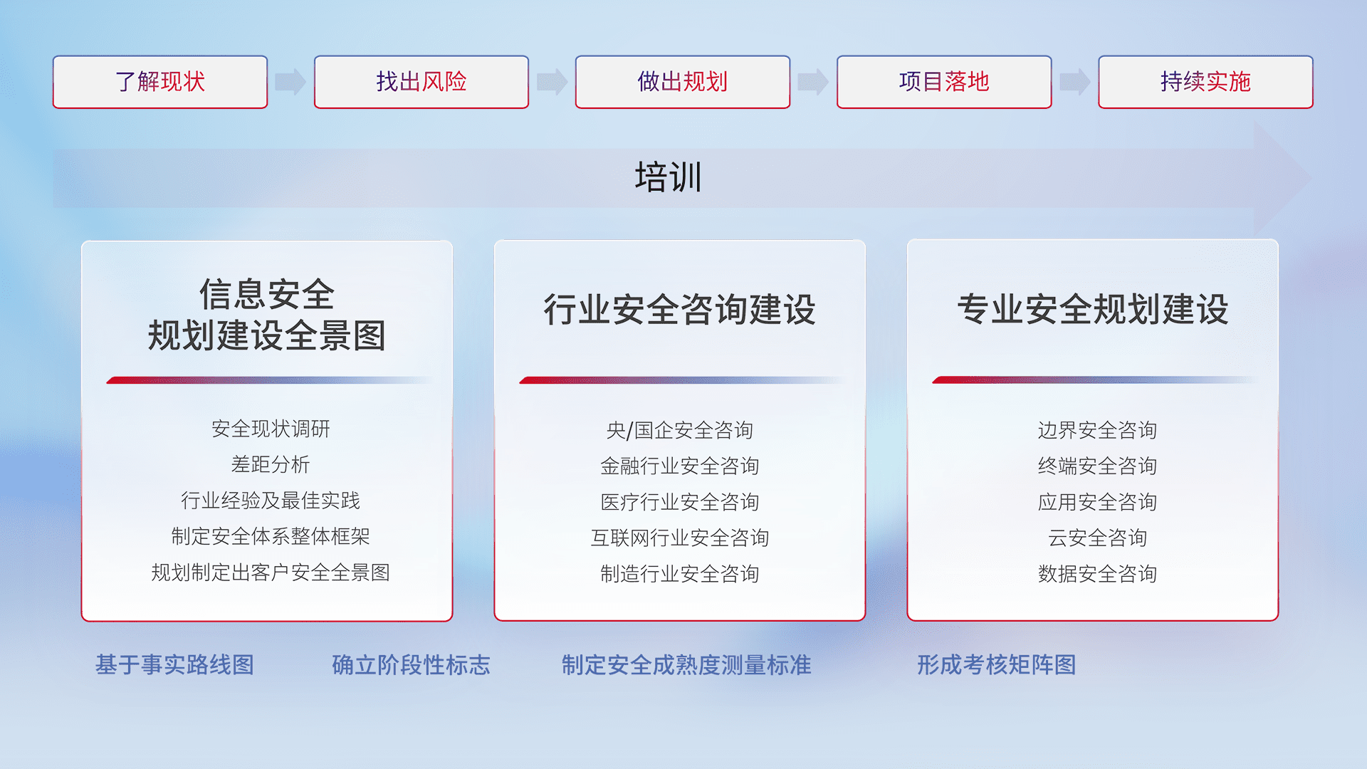 通过专业的法律咨询解读、、合规架构体现、、差异化解决方案、、、测试实施支持等服务,,为客户量身打造等保合规体系。。。